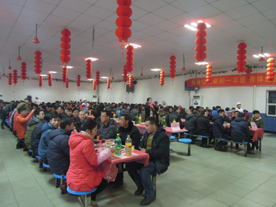春節前夕,集團公司行政、工會組織各事業部分工會對全體員工進行摸底調查,最終確定留守杭州過年的有500多名外地單身員工,為了讓他們在杭州過一個歡樂、溫暖、祥和的新春,公司與往年一樣,為他們舉辦“同吃年夜飯,歡度除夕夜”活動。為此,公司還在食堂掛起了大紅燈籠、彩帶等,增加了節日的喜慶氣氛。