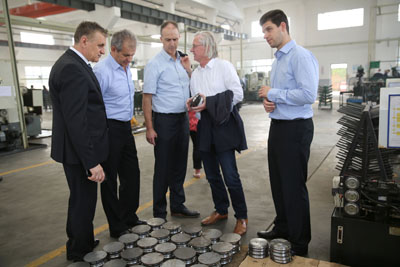 10月14日,與會人員共赴江蘇興化,參觀了興化東華齒輪公司和興化鏈條生產基地。大家在參觀中,不時舉起相機,拍攝精良的設備和生產現場;不時駐足留戀,細究產品的全制造過程,連對新購的156畝土地也頻頻舉起相機,記錄著一切。期間,大家紛紛贊嘆東華的穩健發展,特別是海外公司同事表示,親眼目睹興化鏈條生產基地后,對董事長宣碧華專注制造業,不斷新購土地建廠房,新購設備擴大生產,不斷做精做大做強企業的決心和實際行動表示敬佩,對把東華早日打造為世界一流的鏈傳動企業充滿信心。