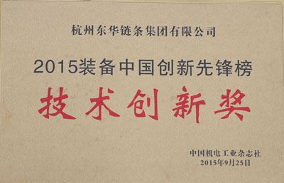 2015年,由中國機(jī)械工業(yè)聯(lián)合會指導(dǎo),《中國機(jī)電工業(yè)》雜志社主辦的2015“裝備中國創(chuàng)新企業(yè)年會”暨“裝備中國創(chuàng)新先鋒榜”頒發(fā)了創(chuàng)新榜樣獎、產(chǎn)品創(chuàng)新獎、管理創(chuàng)新獎、營銷創(chuàng)新獎、綠色創(chuàng)新獎、技術(shù)創(chuàng)新獎,有50多位獲獎企業(yè)代表在此共享榮耀。東華集團(tuán)曾于2013年獲得該獎項(xiàng)。