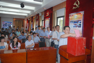 本屆黨委換屆選舉,除出國、工作調動及生病外,到會參與選舉的正式黨員共65名。經過廣大黨員嚴肅認真的無記名選舉、投票、監(jiān)票、唱票等公平公正的選舉程序。魯小林同志高票當選本屆黨委書記。徐美珍、廖杭州、趙鵬飛、 蔣錫林當選為黨委委員。