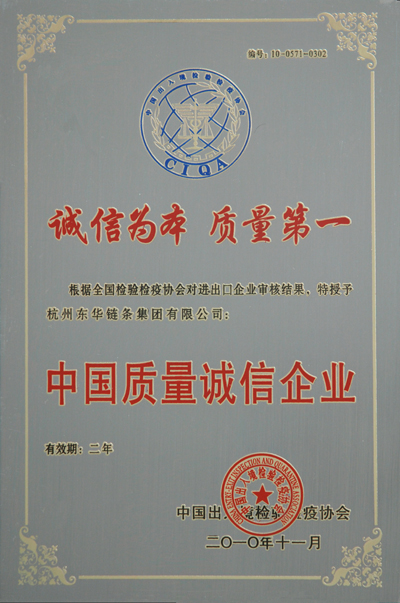 會上,杭州市出入境檢驗檢疫協會對獲得2010年度杭州地區“中國質量誠信企業”的10家單位進行了表彰并頒發了獎牌。浙江檢驗檢疫協會會長張榮生在會上對受表彰的“中國質量誠信企業”表示祝賀并提出新的要求。