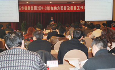 1月26日,東華集團在臨平賓館隆重召開2009至2010年供方配套及質量工作會議??偨浝韽埵缽?、總工程師葉斌、副總經理廖杭州、袁立華、董事宣志榮、各事業部部長、60余家供方代表及東華相關人員參加會議。