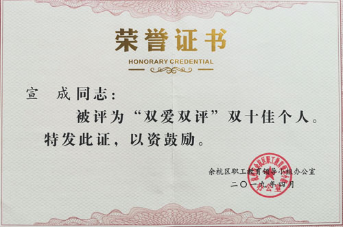 日前,在2019年余杭區(qū)勞動模范和模范集體暨職工創(chuàng)業(yè)創(chuàng)新推進大會上,東華鏈條集團被余杭區(qū)政府授予“余杭區(qū)模范集體”稱號;副董事長宣成被授予“雙愛雙評”雙十佳個人榮譽稱號。扶梯工程鏈事業(yè)部王興全被授予“雙愛雙評”雙十佳個人稱號。“徐長明鉗工技能大師工作室”被授予“勞模(工匠)示范創(chuàng)新工作室”稱號。