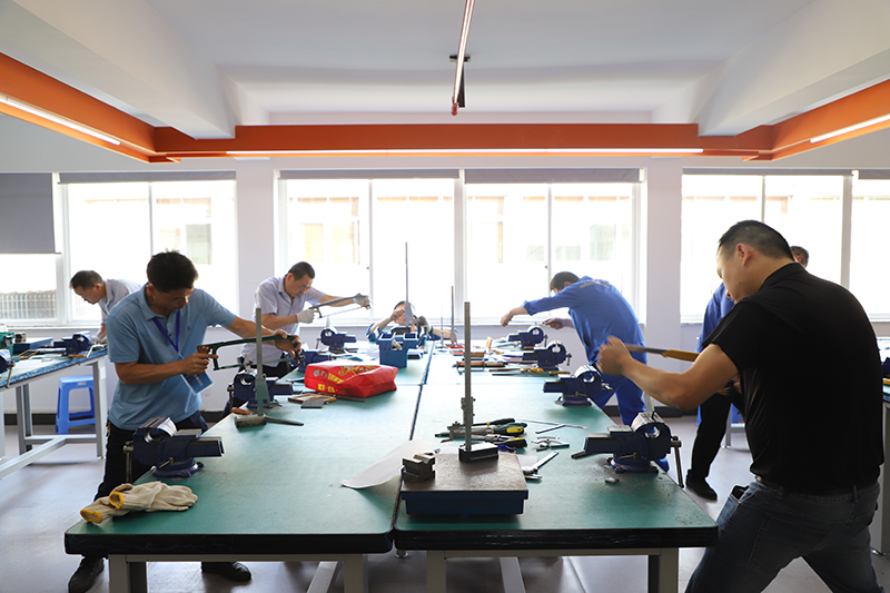 本次鉗工技能比武共有來自春風(fēng)動力、老板電器、東華鏈條、浙江健拓等10家企業(yè)的53名選手參加,考慮到公平公正,選手分為“普通組”和“高級組”進(jìn)行比賽,共進(jìn)行三場比賽。比賽中,參賽選手認(rèn)真識圖、精準(zhǔn)劃線,運(yùn)用鋸、鉆、挫等技藝,以最佳水平將臺鉗上的毛坯件逐漸變成符合標(biāo)準(zhǔn)的成品。