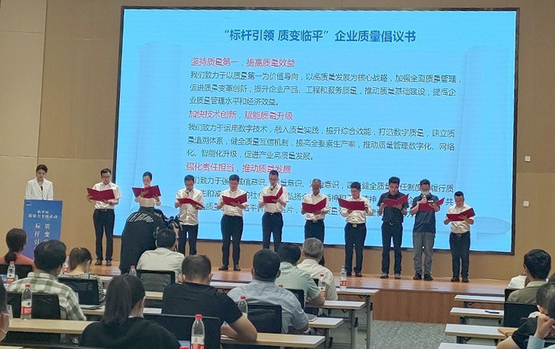 9月16日,臨平區質量強區領導小組辦公室組織召開“標桿引領,質變臨平”質量月專題活動。東華作為區政府質量獎企業應邀參加“臨平質量故事”分享,副總經理廖杭州上臺宣讀了“標桿引領,質量臨平”企業質量倡議書。