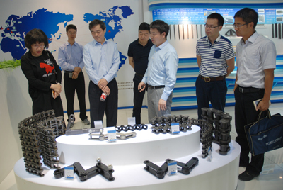 首先,袁總等領(lǐng)導陪同工作組參觀了東華新區(qū)、北區(qū)生產(chǎn)基地及公司展廳,向各級領(lǐng)導介紹了鏈條與人類發(fā)展的淵源及世界鏈條發(fā)展史、中國鏈條發(fā)展史和東華鏈條發(fā)展史。各級領(lǐng)導參觀中,對公司精良的制造裝備、先進的生產(chǎn)工藝、可靠的質(zhì)量保證能力及豐富齊全的產(chǎn)品紛紛給予好評。許司長說,通過參觀改變了我們對鏈條的認識,發(fā)現(xiàn)鏈條要求其實很高,制造精度高,應用領(lǐng)域廣泛,品種非常豐富。