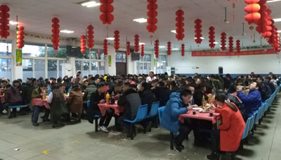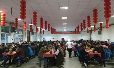 每年春節(jié),公司都有不少員工因各種原因留守在杭州過年。今年春節(jié)前夕,集團(tuán)公司黨政、工會(huì)對全體員工進(jìn)行摸底調(diào)查,確定留守在杭州過年的有400多名外地員工,為了讓他們在杭州度過一個(gè)歡樂、溫暖、祥和的春節(jié),公司與往年一樣,為他們舉辦“同吃年夜飯,歡度除夕夜”活動(dòng)。飯桌上,圍坐在一起的員工,很多都來自不同的部門崗位,不同的省份,平時(shí)并不熟悉,但是,同吃“年夜飯”帶給大家的就是家的感覺。坐在“年夜飯”的飯桌邊,大家一下子成了“一家人”。