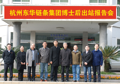 12月6日,杭州東華鏈條集團召開博士后出站報告會。評審專家組由吉林大學(xué)博導(dǎo)/教授孟繁忠、馮增銘,浙江大學(xué)博士/教授楊將新,余杭區(qū)人社局劉慰科長,東華集團總工程師葉斌,副總經(jīng)理袁立華共六位專家組成。